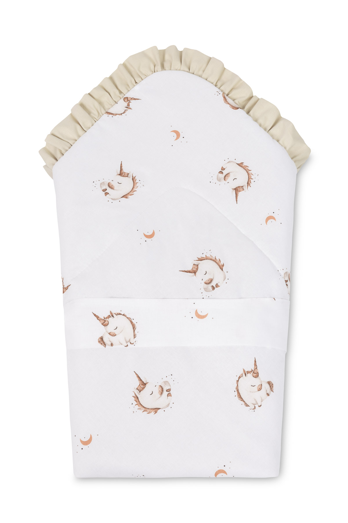 The swaddle wrap is made of the highest quality, safe materials that are gentle on baby’s sensitive skin. The anti-allergenic filling protects against allergies and irritations, ensuring peaceful sleep and daily safety. An easy ribbon closure allows for adjustment and customization to the child’s individual needs.