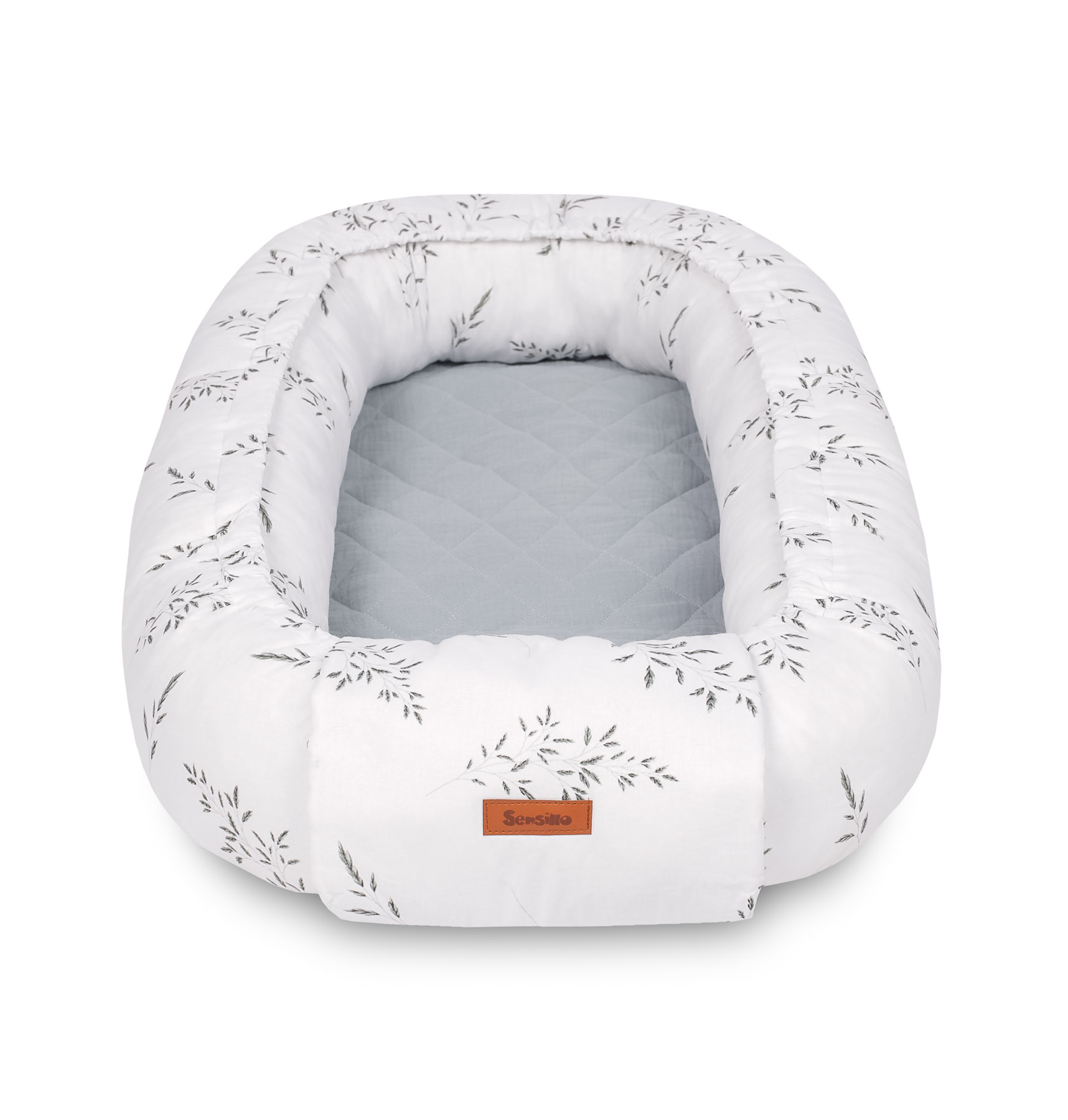 The base of the nest features a removable mattress, covered on one side with muslin fabric and on the other with delicate cotton adorned with a cute print. This allows you to adjust the mattress side to meet the changing needs of the child and environmental conditions.
