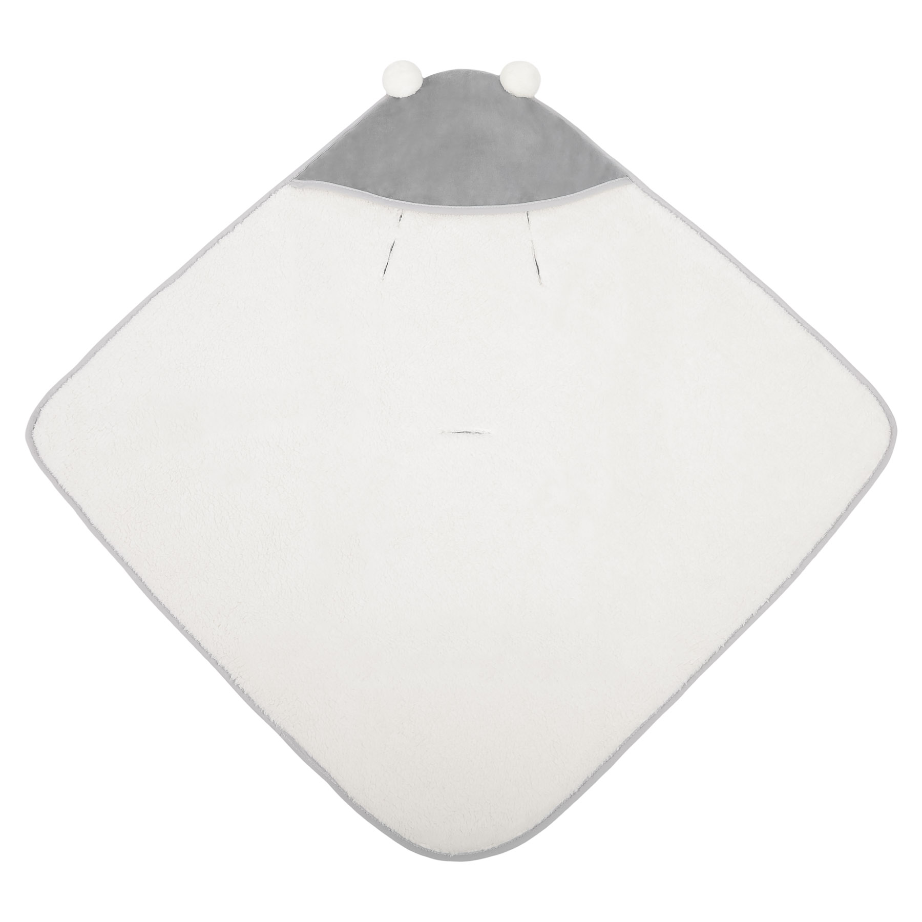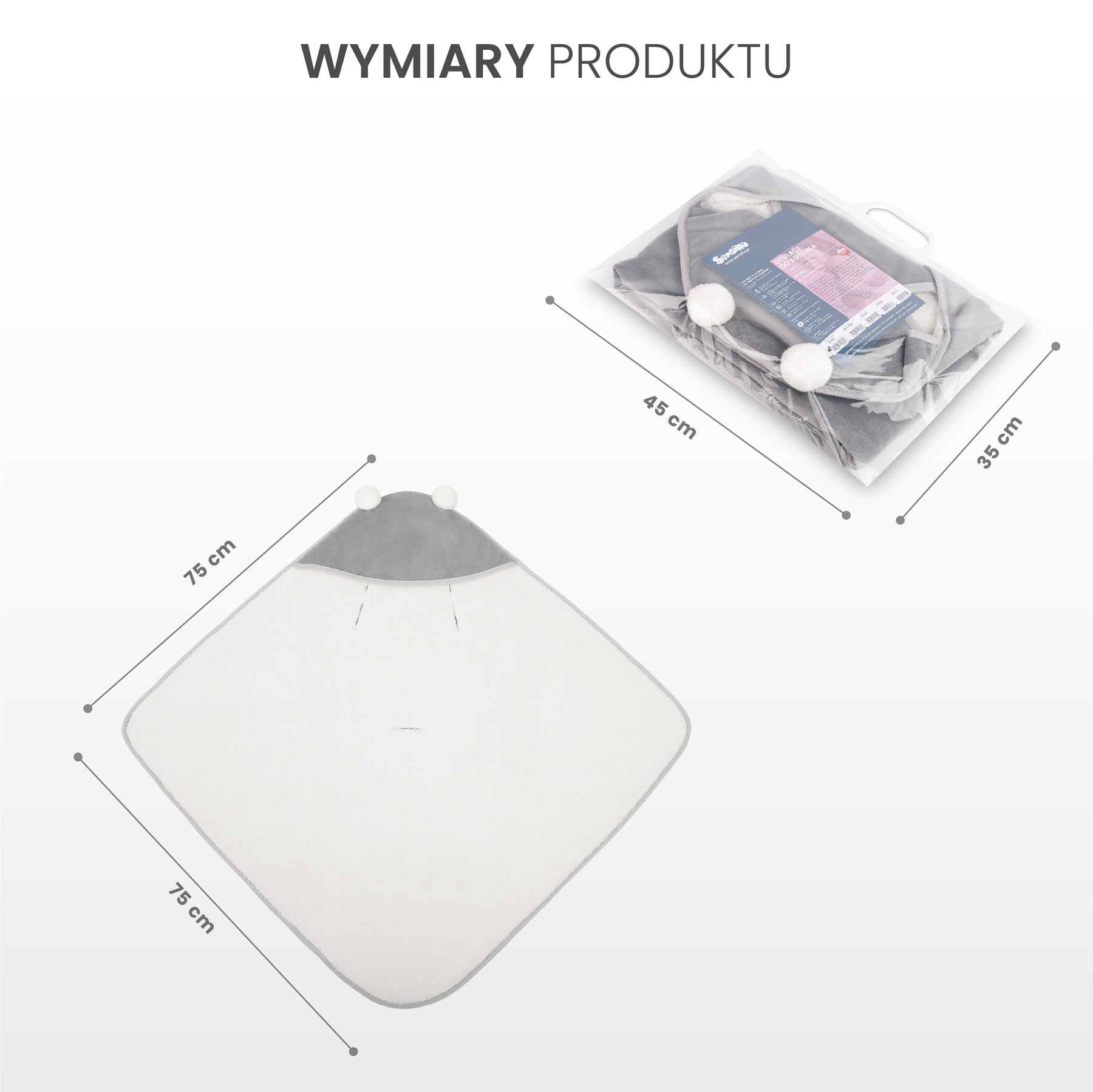 Otulacz został stworzony z myślą o komforcie i bezpieczeństwie maluszka podczas podróży. Ciepło zapewniają dwie estetycznie połączone warstwy – gruby, miękki plusz od zewnątrz oraz elegancki, miękki materiał od wewnątrz. Specjalne wycięcia na pasy bezpieczeństwa umożliwiają szybkie i bezpieczne przypięcie dziecka w foteliku, bez konieczności zdejmowania otulacza. Praktyczny kapturek chroni główkę przed chłodem, a ozdobne pompony nadają całości uroczego, dziecięcego charakteru.